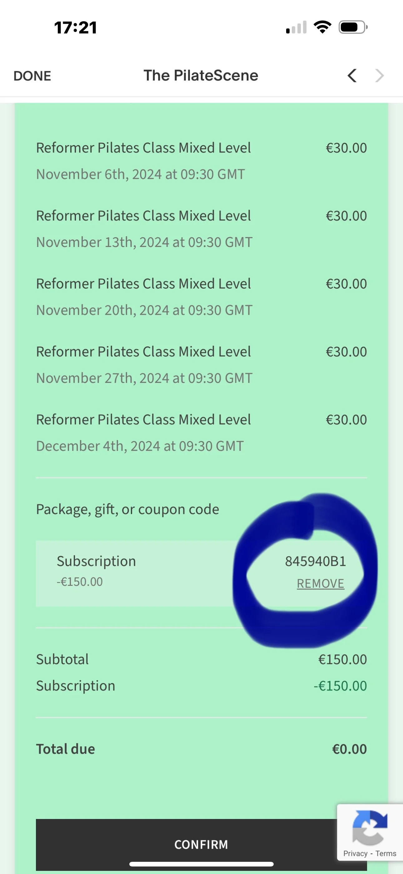 Step 4 - use the membership to book in for your classes - you can choose recurring 5 times and then you’ll be booked into the same class each week for 5 weeks.You can change your times if it doesn’t suit you.