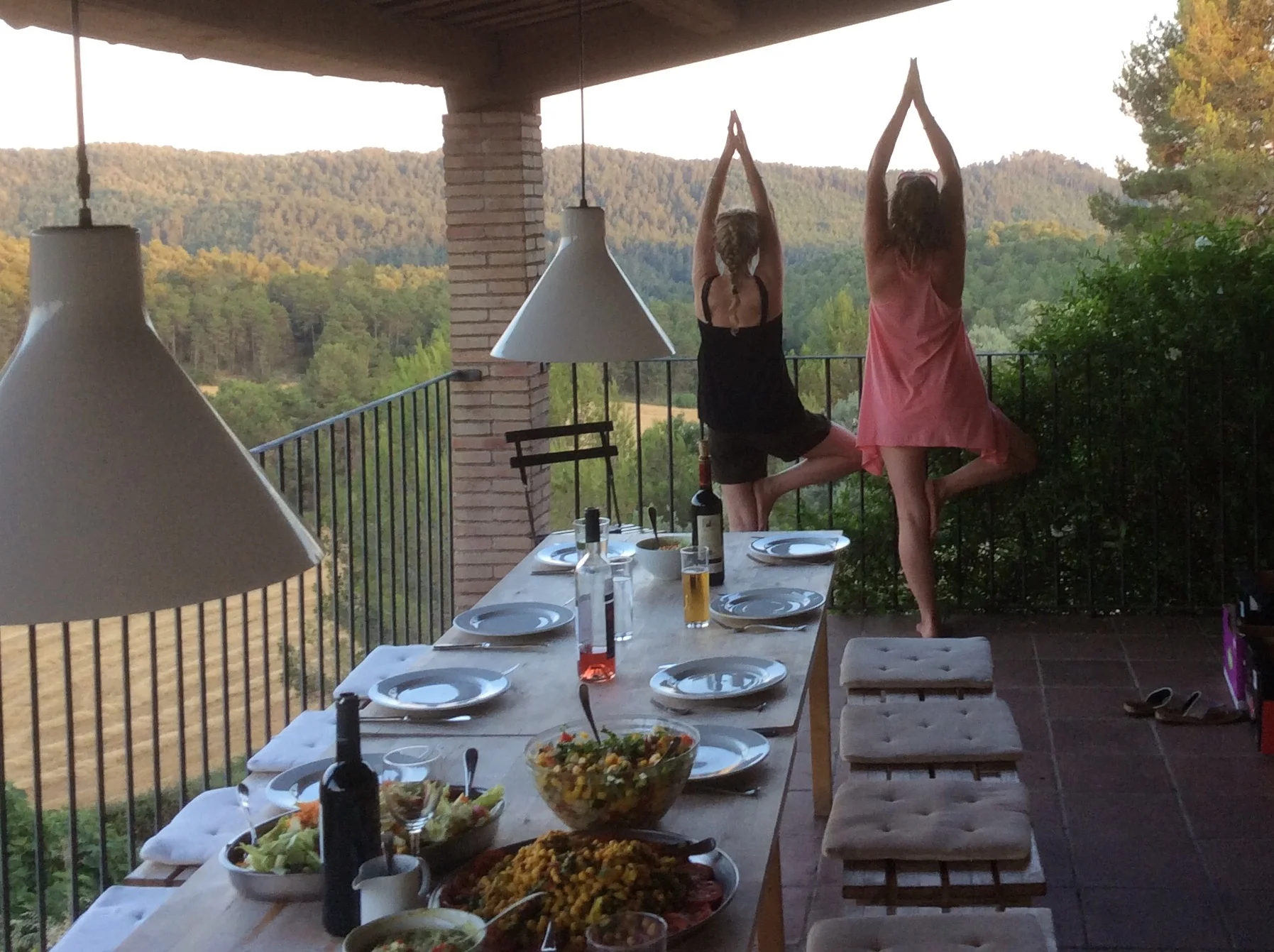 A 6 day blissful Iyengar yoga retreat in the heart of Catalunya, one hour from Barcelona airport. The farmhouse has been fully restored and converted into a luxury rural retreat with eight double and triple bedrooms. It is completely divine and tranquil beyond belief - The house has all the necessary amenities to fully enjoy the peace of the natural surroundings, including a fully equipped kitchen, living space, a saltwater pool and gorgeous views of the peaceful Catalan countryside. Linens, towels and wi-fi are also included. In addition to the living and sleeping areas there is also a large multi-purpose room that is an ideal space for yoga.